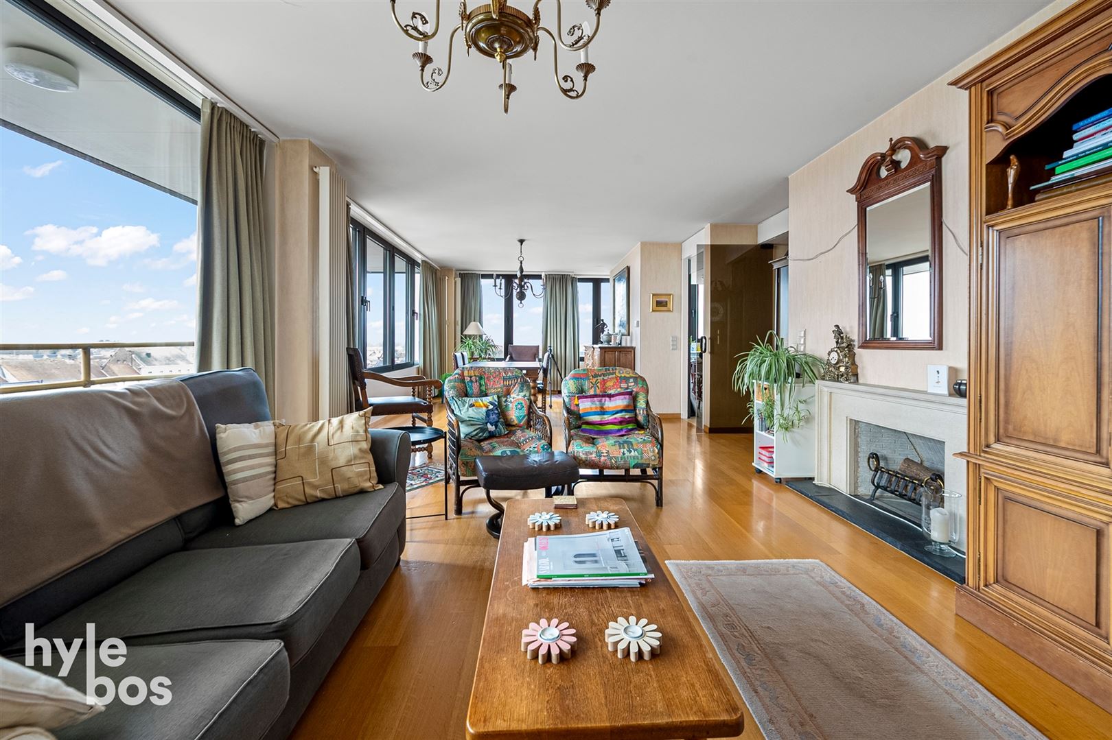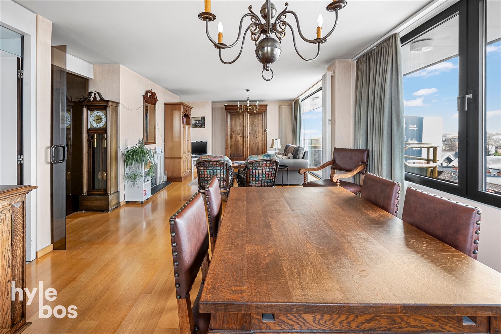 Ruim en instapklaar appartement op de 6e verdieping, gelegen in het centrum. Dankzij de hoge ligging geniet je hier van een prachtig en ruimtelijk zicht. Het appartement beschikt over een grote, lichtrijke leefruimte met parketvloer, wat zorgt voor een warme en gezellige sfeer. De afzonderlijke keuken is volledig ingericht en biedt alle nodige comfort.